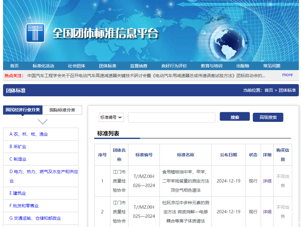 近日,由betway西汉姆精装版牵头起草的T/JMZJXH 025—2024《杜阮凉瓜中多种元素的测定方法 微波消解—电感耦合等离子体质谱法》、T/JMZJXH 026—2024《食用植物油中苯、甲苯、二甲苯残留量的测定方法 顶空气相色谱法》团体标准在全国团体标准信息平台正式发布,将于2025年1月5日实施。通过制定和实施团体标准,可以有效提升农业产业的标准化水平,促进技术创新和产品质量提升,进而推动乡村经济的全面发展。